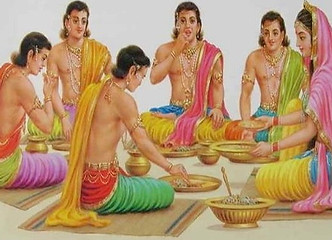 マハーバーラタ戦争の起こる前、ドルヨーダナ(100王子軍の大将)とアルジュナ(5王子軍の将軍)がクリシュナ王の宮殿に駆けつけました。相手を味方に引き入れるには早く頼んだもの勝ちという風習があったので両雄があわててクリシュナのところにやってきました。